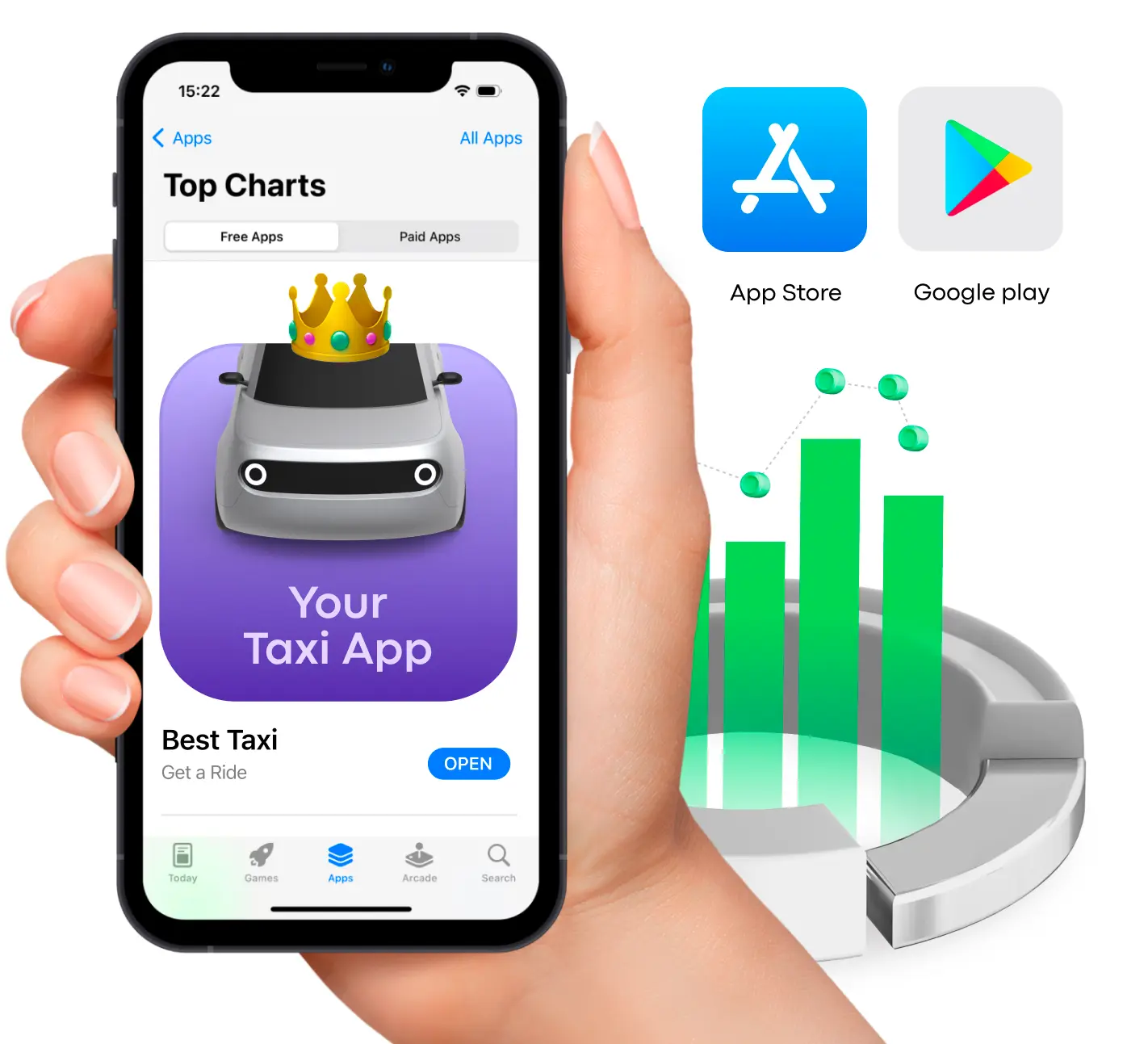 | Time to launch | Developer on your side required | Hidden payments | Built-in payment gateways | Stability | App updates & maintenance | Apps’ branding | Backend built-in | Marketing assistance | App stores launch support | |