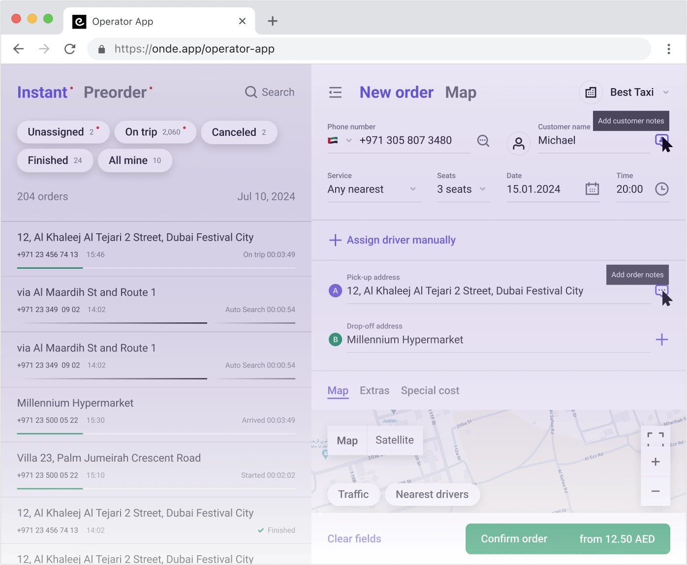 That’s what Operator App is for! Orders can be assigned automatically and manually. Operators can find specific orders, edit order details, and duplicate orders, among other things.