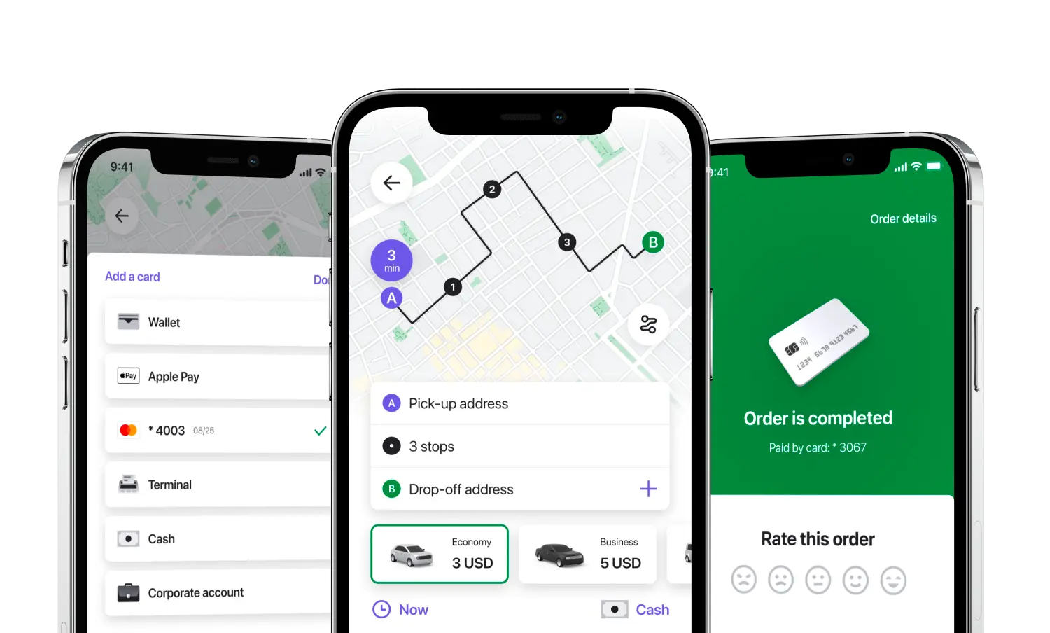 Na aplicação Cliente, os seus clientes podem pagar com cartão, terminal, dinheiro ou utilizando a funcionalidade Wallet. Todos os pagamentos são seguros, protegendo a privacidade dos clientes e permitindo-lhes guardar os dados do cartão para futuras deslocações.