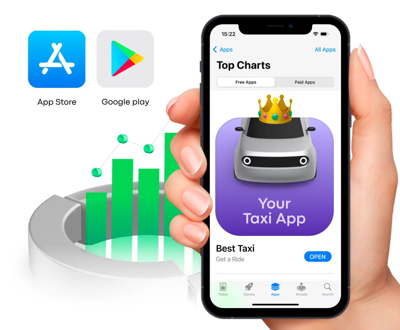 Para promover a sua aplicação de cliente e ganhar mais utilizadores desde o início, pode utilizar uma combinação de Otimização da App Store (ASO) e anúncios pagos.