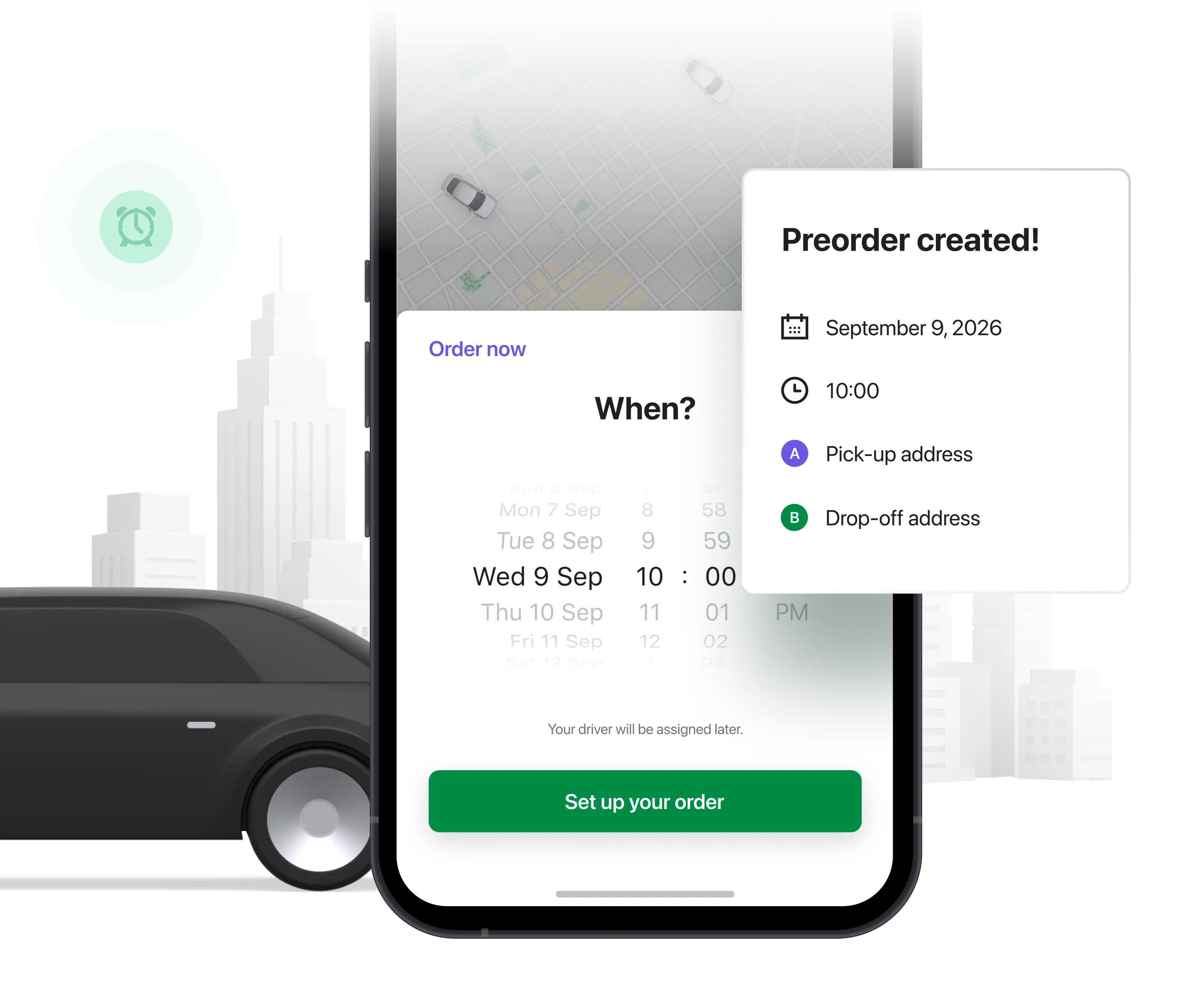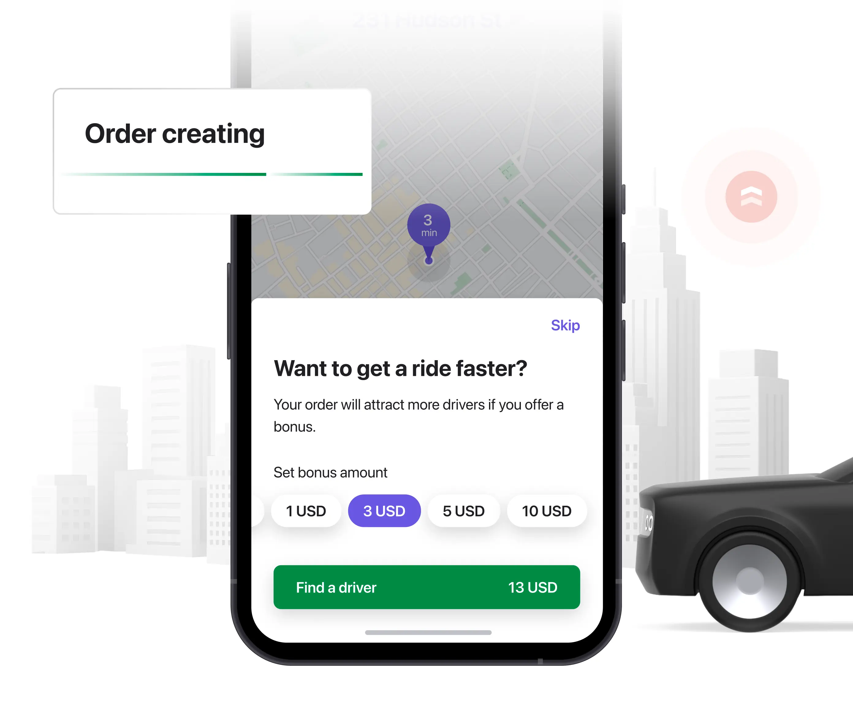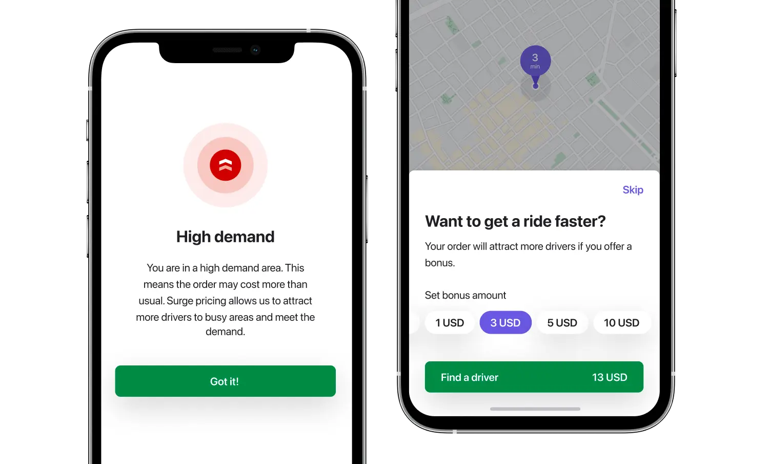 Com pressa, enquanto o tempo de espera é demasiado longo? A aplicação Cliente permite aos utilizadores oferecer um preço mais elevado aos motoristas para dar prioridade ao seu pedido e obter o táxi mais rapidamente. Esta funcionalidade deixa tanto o cliente como o motorista satisfeitos!